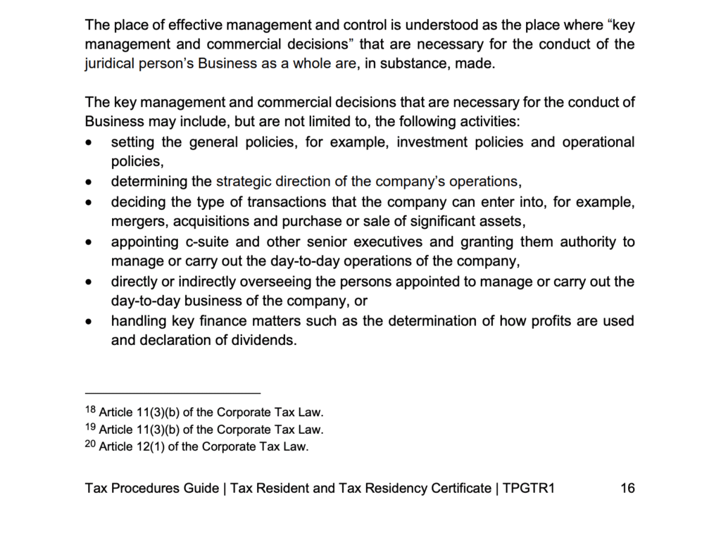 Denn hierbei gibt es einen internationalen OECD Standard und dieser nennt sich “Place of Effective Management”. Das heißt egal wo eine Firma gegründet wird, besteuert wird sie wo sie geführt wird. Wenn man als eine Firma in den USA gründet, aber diese aus Dubai aus leitet muss man diese steuerlich in den VAE registrieren und entsprechend Steuern abführen.